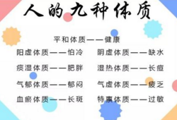 人的体质质类型总得来说可以分为9种,正是由于不同的体质存在,所有有些东西这个人吃了没事,换一个就会拉肚子,现在我们就要弄清自己是什么体质的,选择适合自己的养生方法才是最重要的。关于体质,它的形成可以是先天的也有可能是后天形成的,人体的形态结构和功能方面是和相对稳定的,所谓的个体体质不同,主要是表现在生理状态下对外界刺激的反应中的差异性,发病的过程就是致病因子的遗传变异物基础上,人体的一种特征。