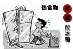 高温食物不宜直接放入冰箱之中,它不仅会让冰箱内部的温度上升还会凝结大量的水蒸气,潮湿的环境会加速食物的变质还会加速细菌的生长。所以我们应当等食物放凉之后再放入冰箱。为了消除冰箱中食物的微生物,冰箱中的食物拿出后要加热到60度以上方可食用。冰箱中存放食物要生熟分生,上熟下生,这样可以避免熟食被污染。剩下的食物最好是用密封袋或是保鲜盒分装。冰箱内部最好一周擦拭一次。