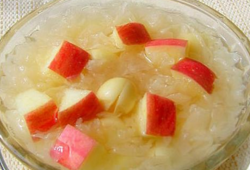 食材:苹果两个,花旗参片一撮、银耳一小块、冰糖适量