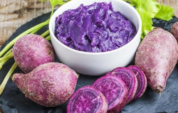 紫薯,薯类食物是最好的减肥食物,它含有大量的食物纤维,它的能量也是非常低的,是想要减肥人群的最佳食品,紫薯中同时也含有花青素,可以让皮肤青春永驻,所以如果你想要美丽动人,那么可以经常食用它,紫薯除了美容及减肥的作用以外,还有补血的作用呢,因为它所含的铁元素可以预防缺铁性贫血,让你的肤色更为红润,紫薯更适合当做早餐或晚餐,紫薯虽好但不一定完全作为主食,每天适当吃一些即可。